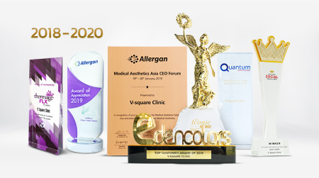 2018 年 在 Allergan 公司评选的 亚洲优秀 20 家面部整形美容院中 V Square Clinic 有幸成为Allergan 公司 评选的 6 家泰国优秀面部整形美容院之一 专业认可,医生团队值得信赖