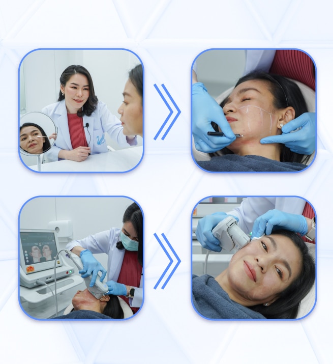 - 医生使用Ulthera SPT进行治疗,以提升和紧致需要治疗的皮肤区域。