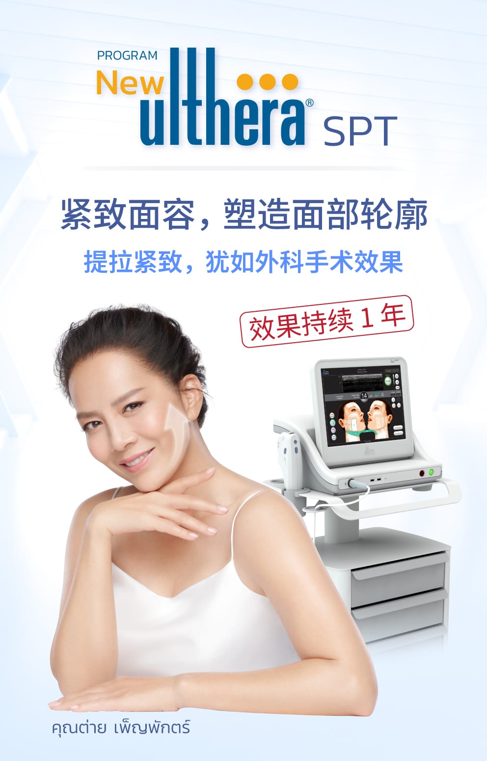 泰国美容院的热门抗衰项目,超声刀(Ulthera SPT)是一种有效提拉皮肤的高强度聚焦超声波技术,治疗时可直接到达筋膜层(SMAS),其能在不伤皮肤组织的前提下,能使高能量的超声波聚焦于治疗部位,精准输入超声波能量,刺激肌肤组织自我更新、催生胶原蛋白,美版超声刀音波影像实时定位,随时观测筋膜组织,医生能精准把控治疗深度和能量大小,紧致提拉,安全有保障。